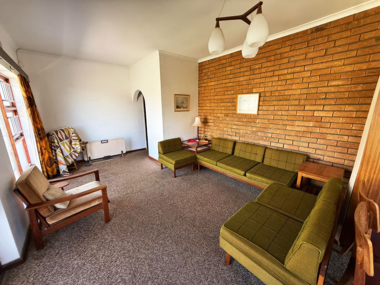 Step inside and discover a comfortable layout featuring two bedrooms and one full bathroom. You'll find a spacious lounge/dining area with characterful exposed brick accent walls and high ceilings, plus a functional kitchen. While the interior has a classic feel, it offers a fantastic canvas for your personal touch, letting you update it to your modern tastes.