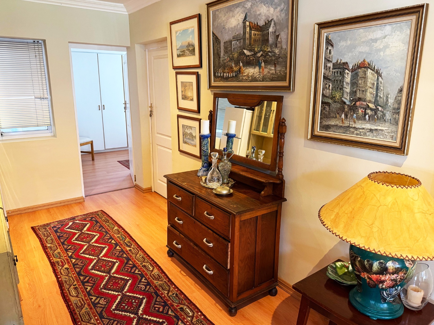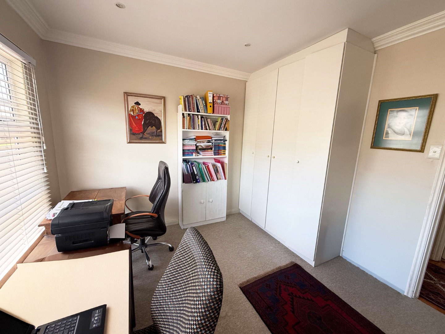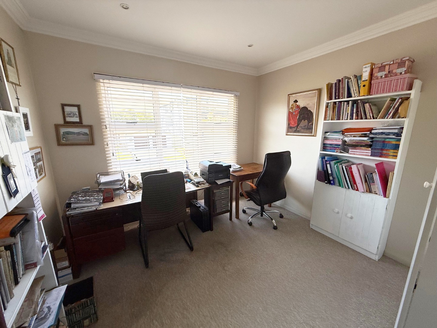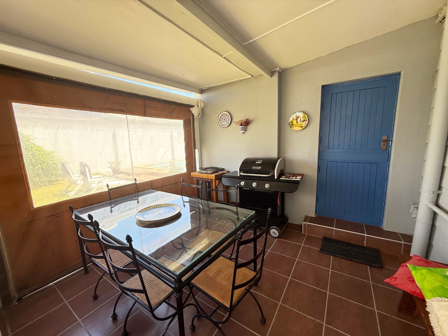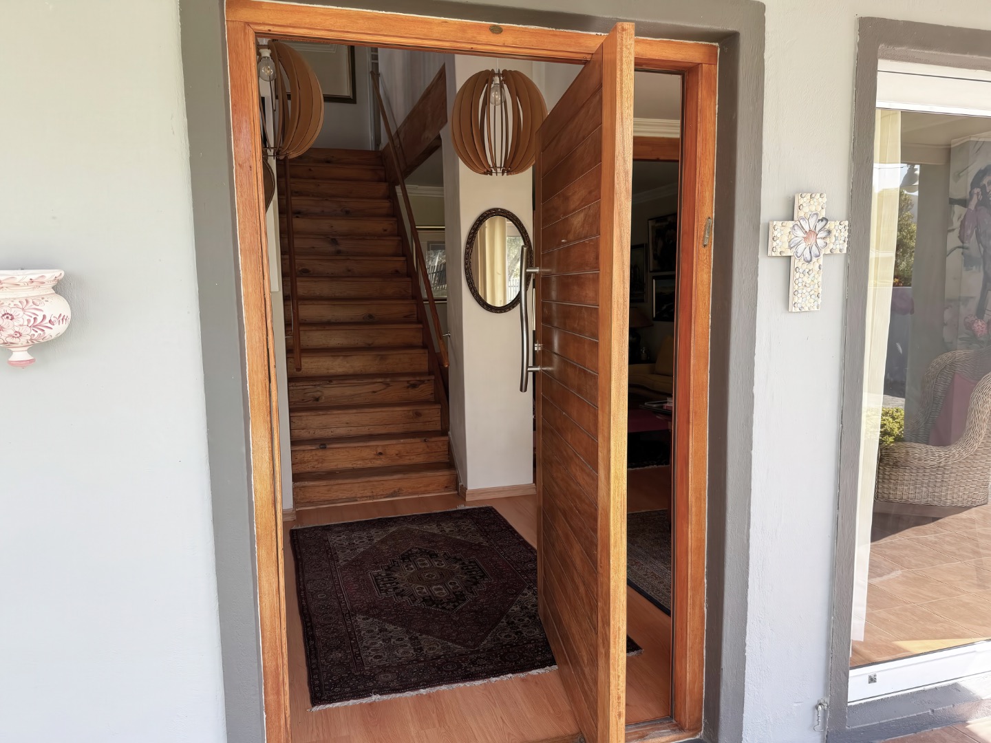 The property is well-equipped for modern convenience and peace of mind, featuring pre-paid electricity and a comprehensive solar system with six panels, a 5kw inverter, and 10kw batteries. Security is excellent, consisting of a fully walled perimeter with automated access, automated garage doors, and Trellidors on select exterior doors. The extra-large garage also includes an adjoining storeroom and washing room.