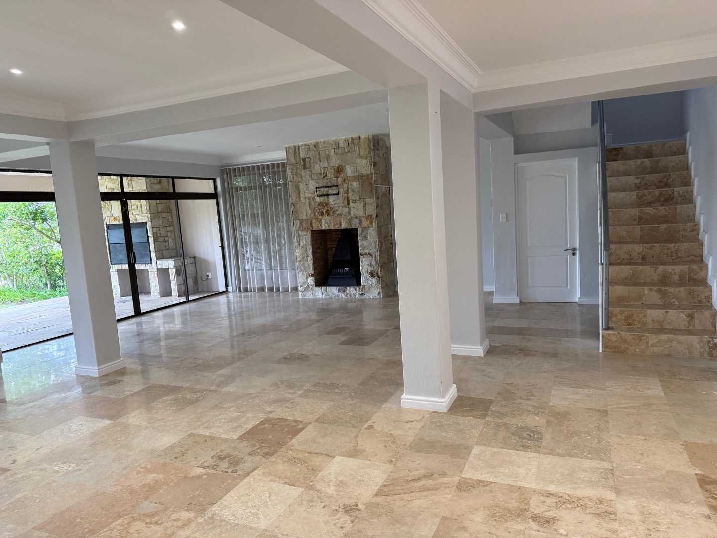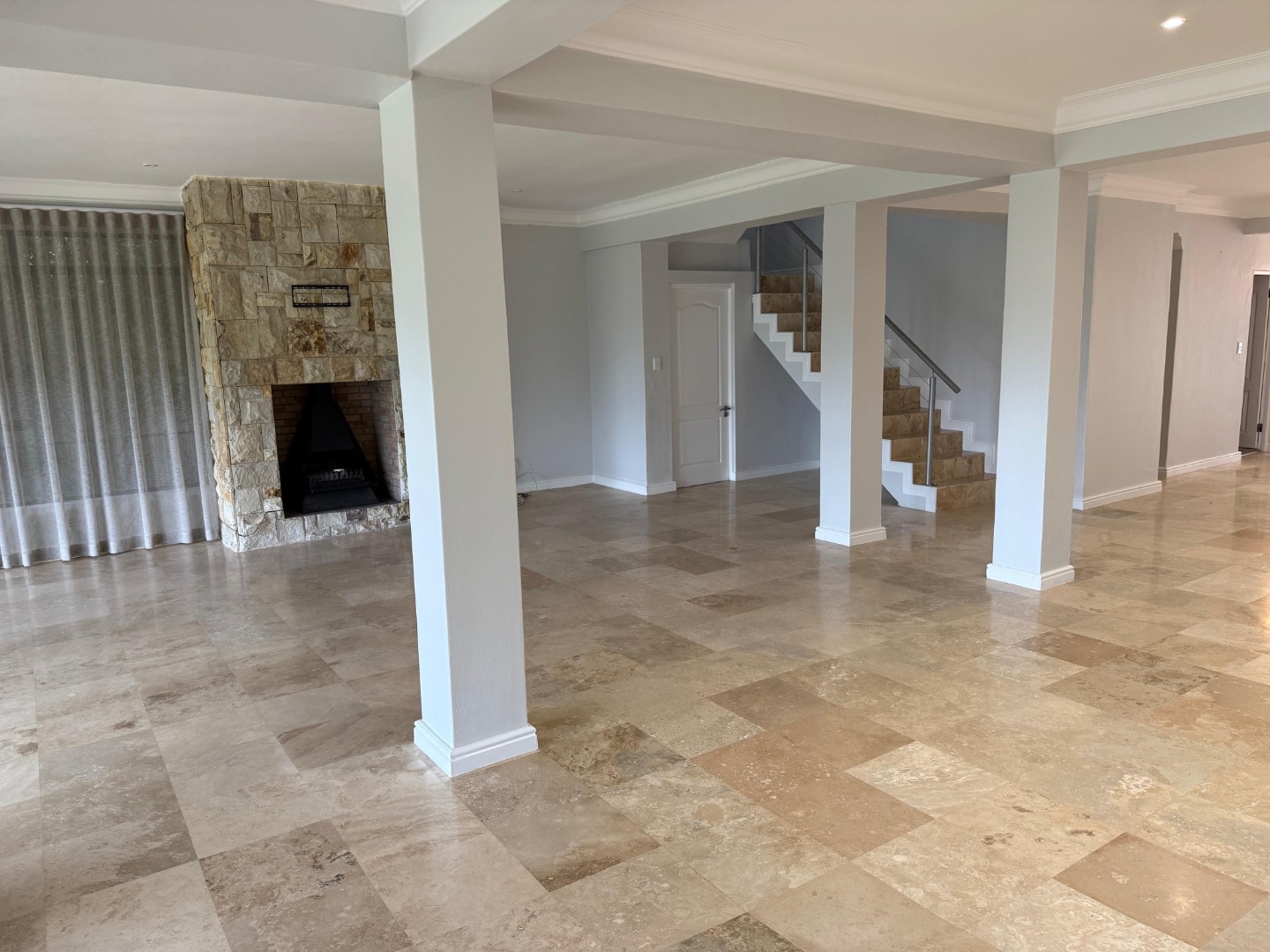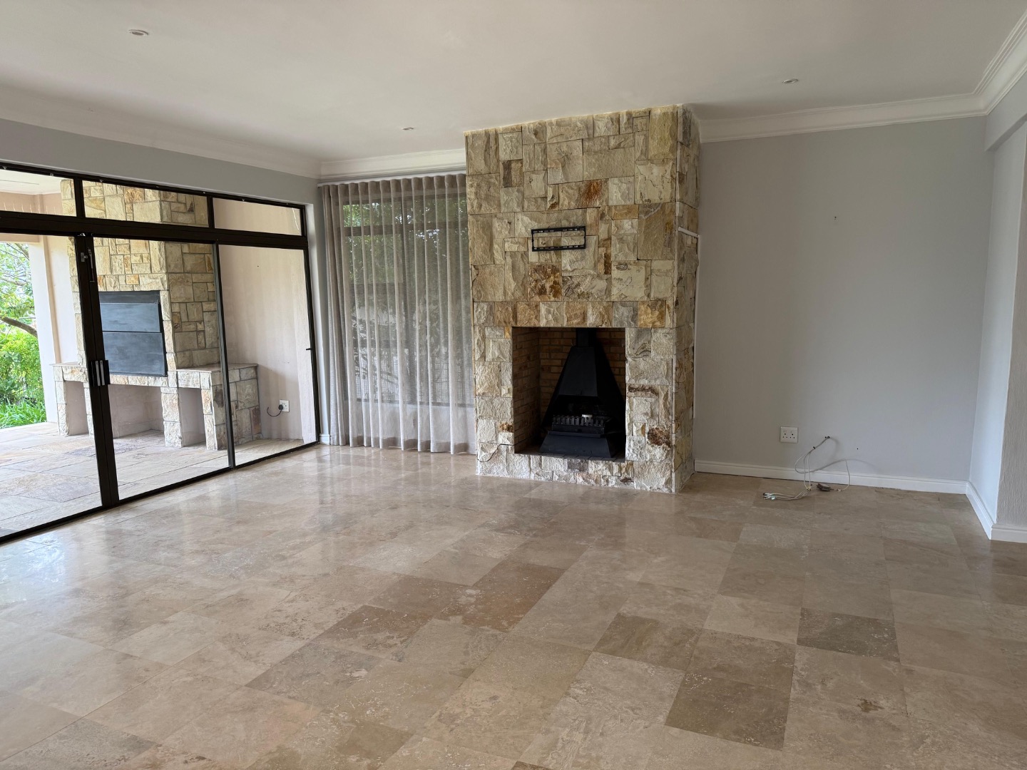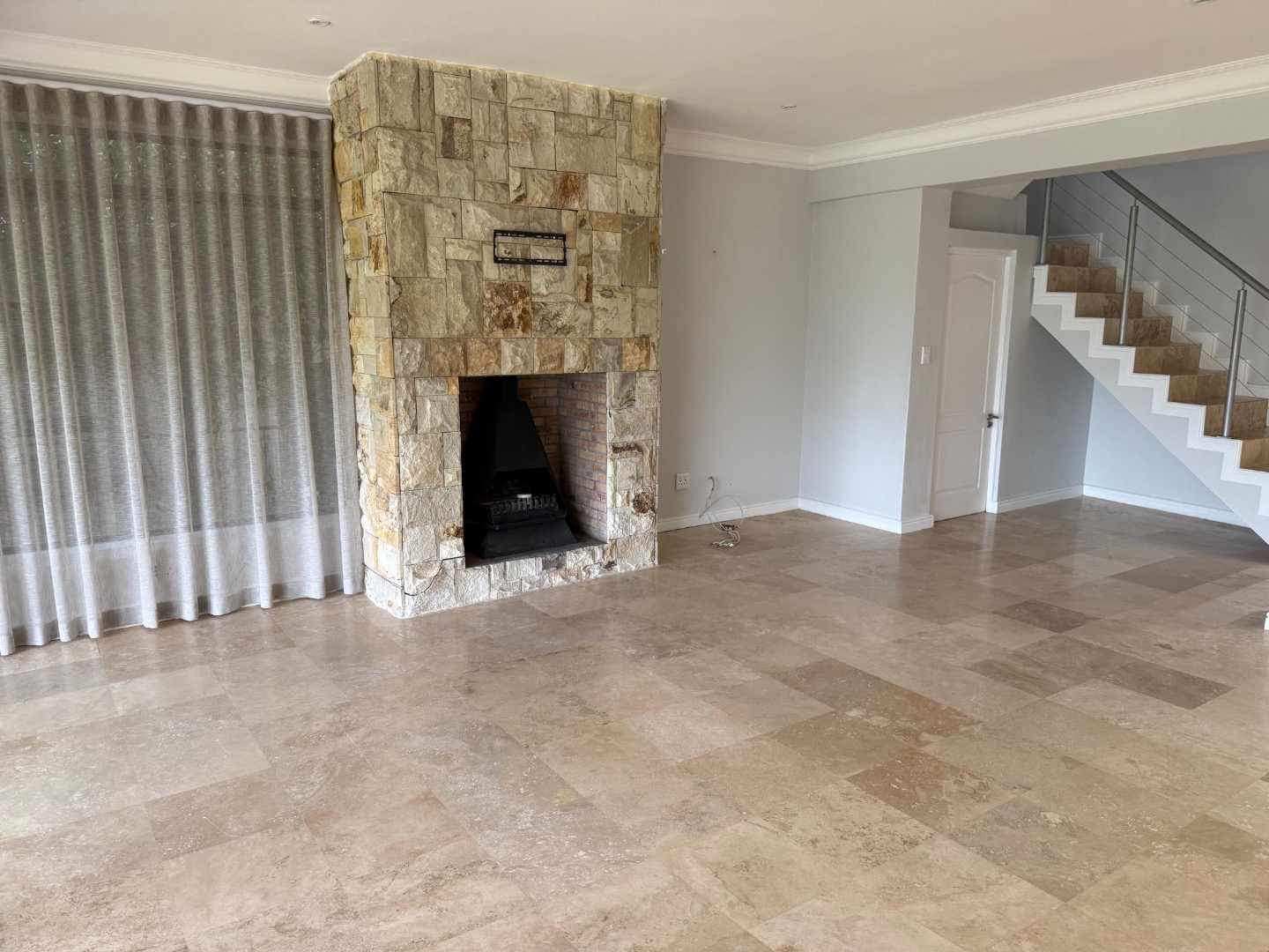 Enjoy cozy winter evenings by the fireplace in the living area, and appreciate the elegance of beautiful travertine tile flooring that flows throughout the entire house. For instant connectivity, fibre internet is already installed. The house is rented with fitted curtains.