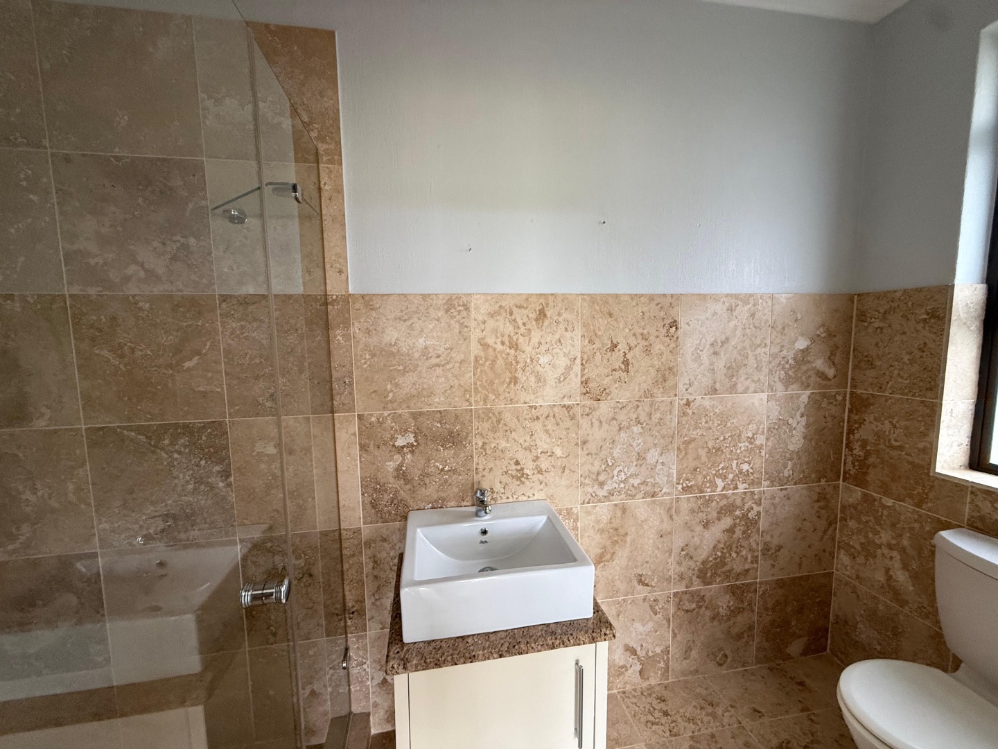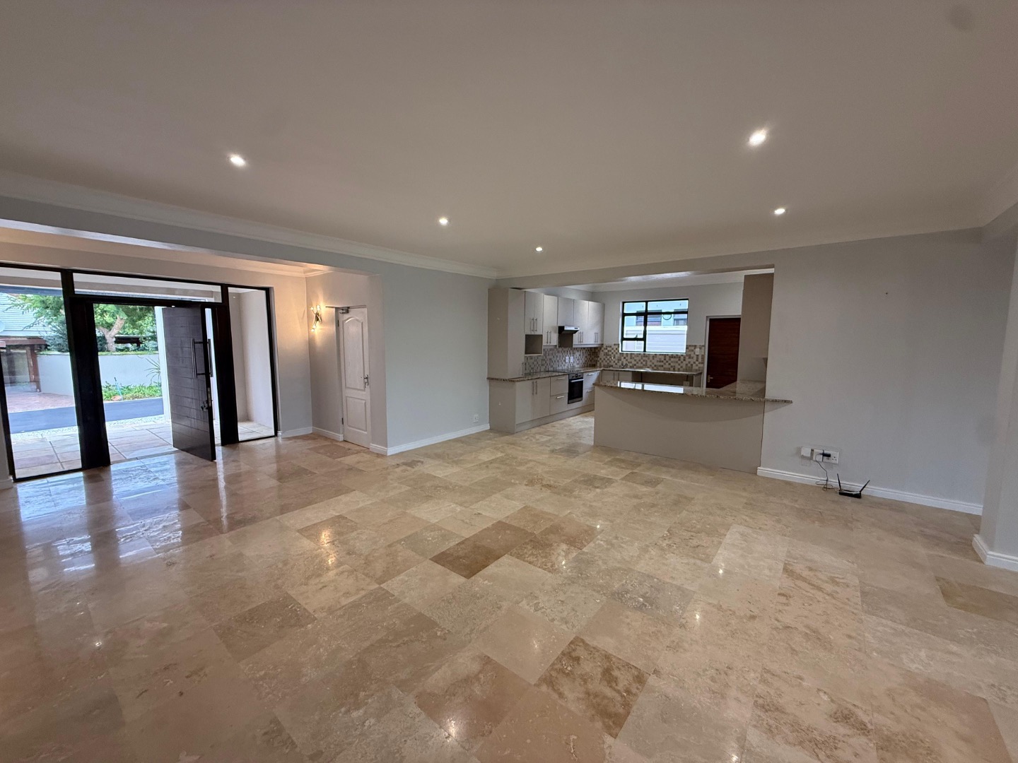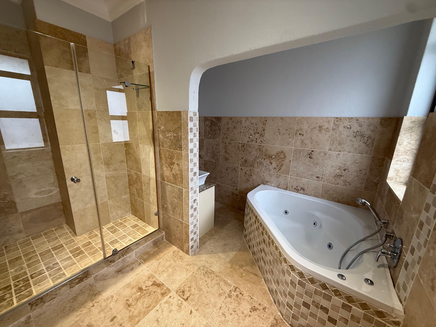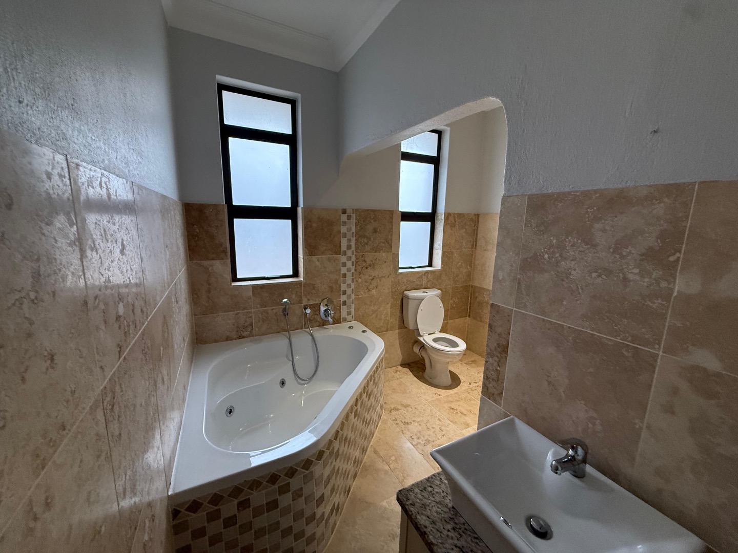Enjoy cozy winter evenings by the fireplace in the living area, and appreciate the elegance of beautiful travertine tile flooring that flows throughout the entire house. For instant connectivity, fibre internet is already installed. The house is rented with fitted curtains.