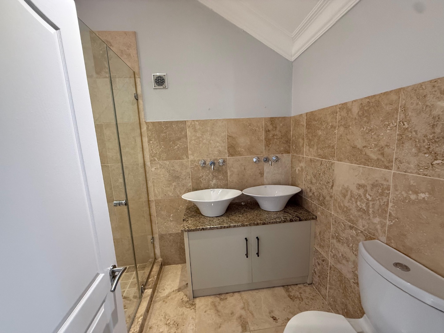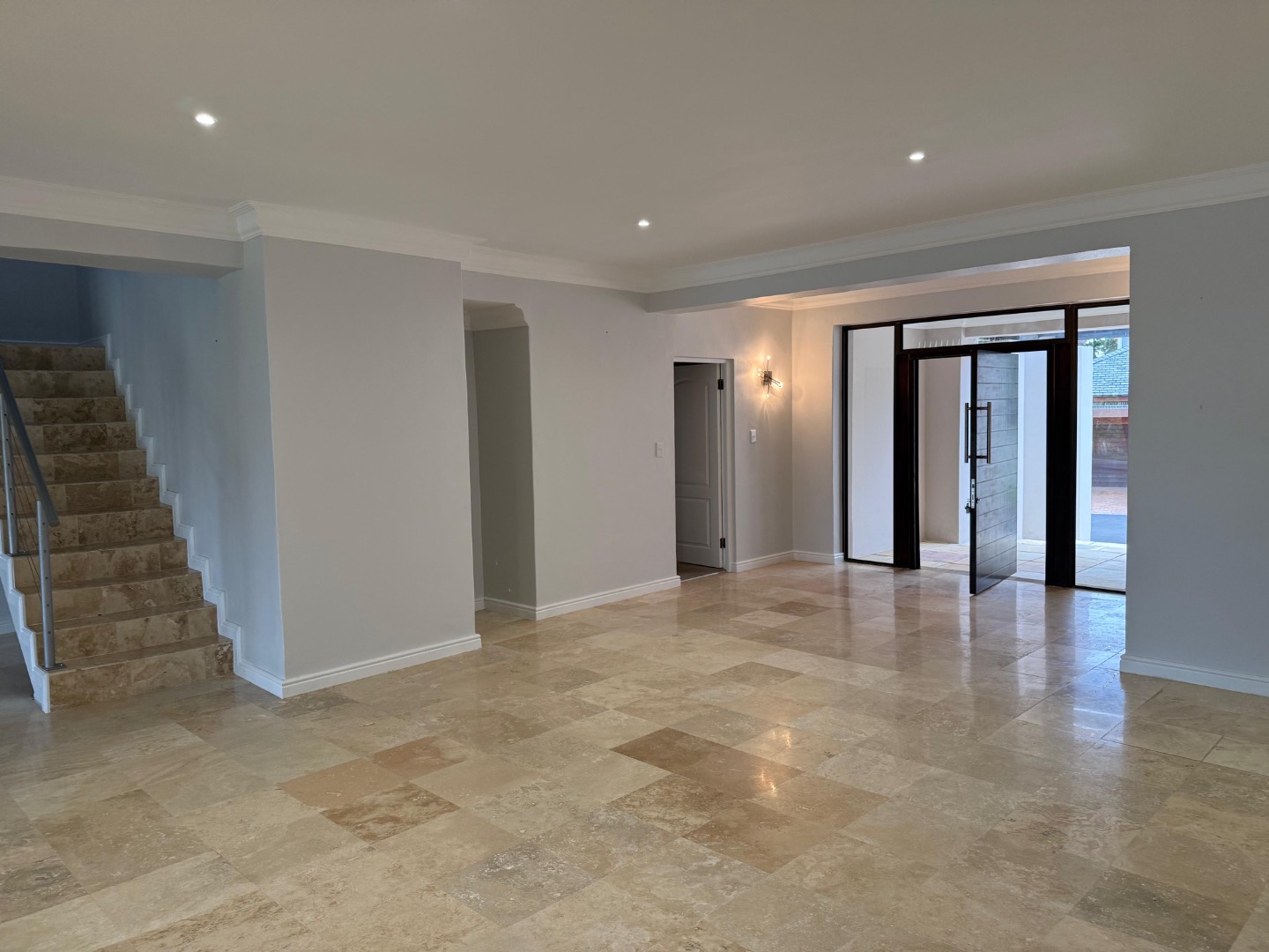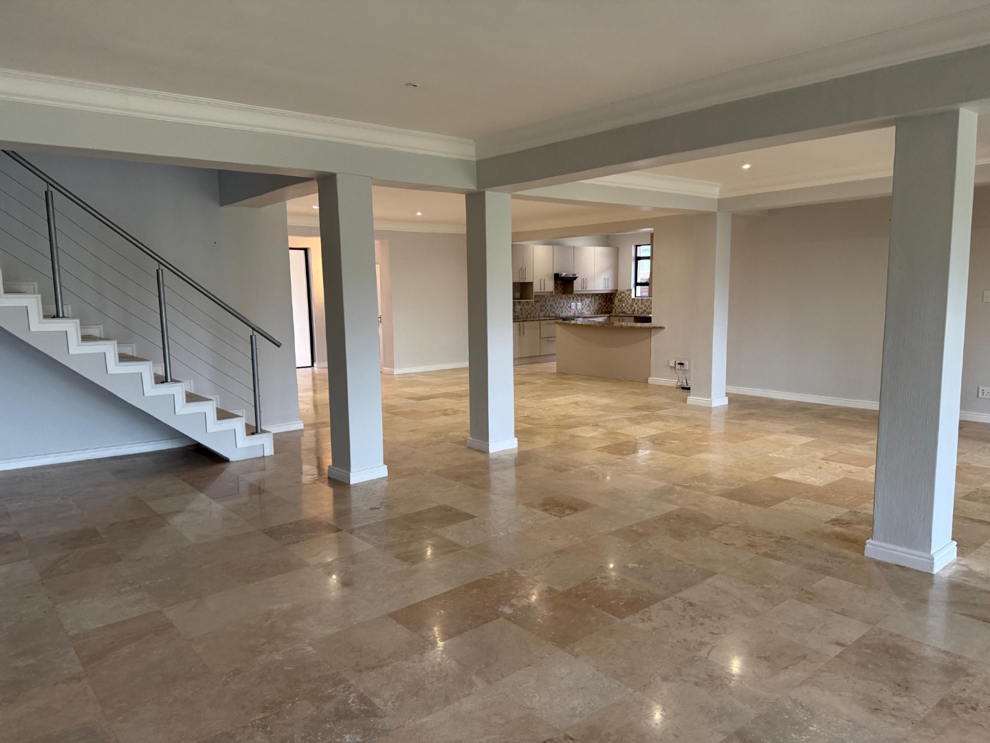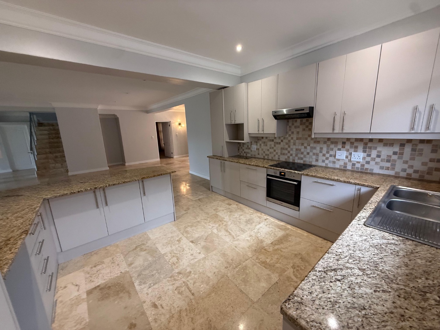 Enjoy cozy winter evenings by the fireplace in the living area, and appreciate the elegance of beautiful travertine tile flooring that flows throughout the entire house. For instant connectivity, fibre internet is already installed. The house is rented with fitted curtains.