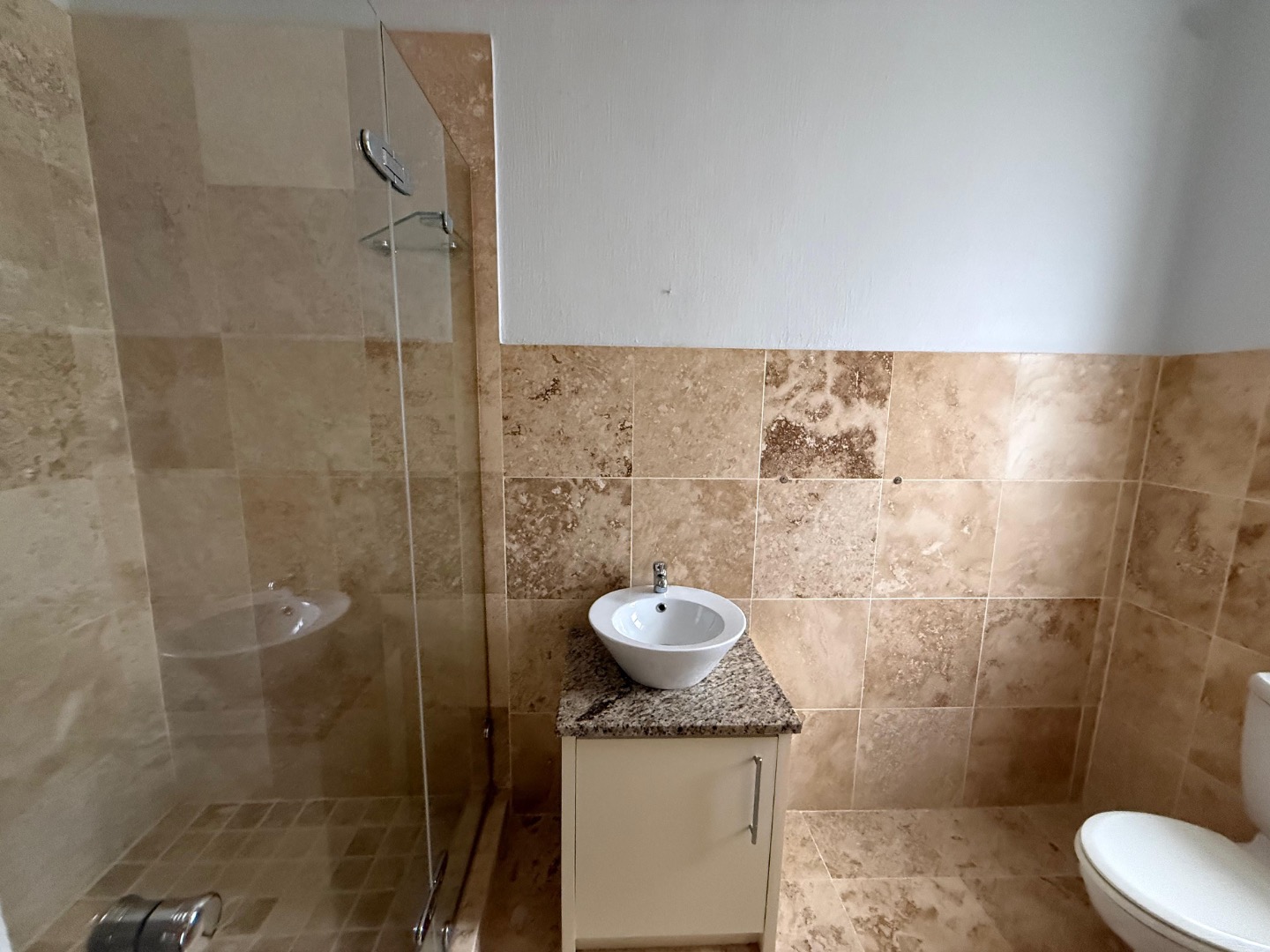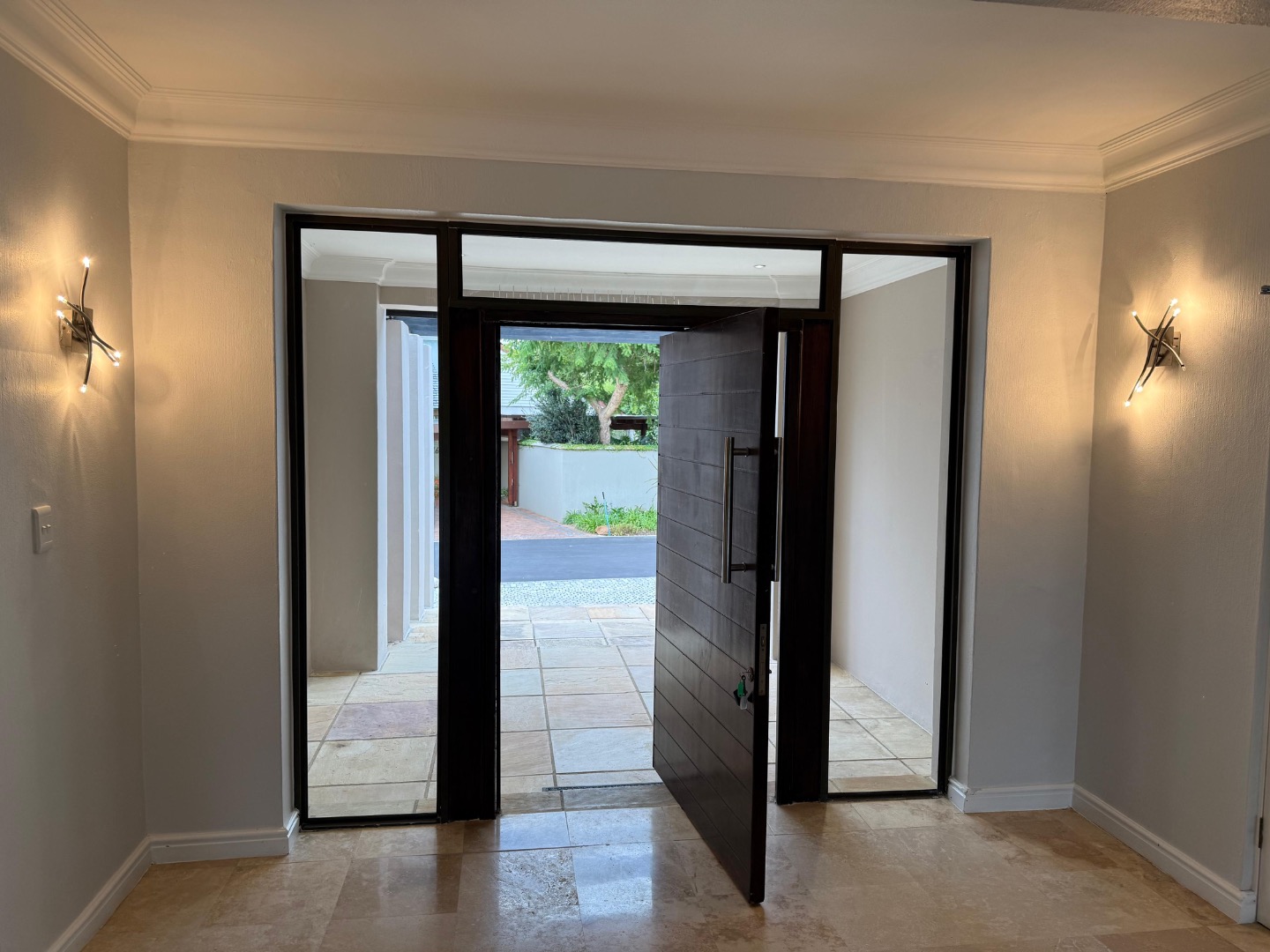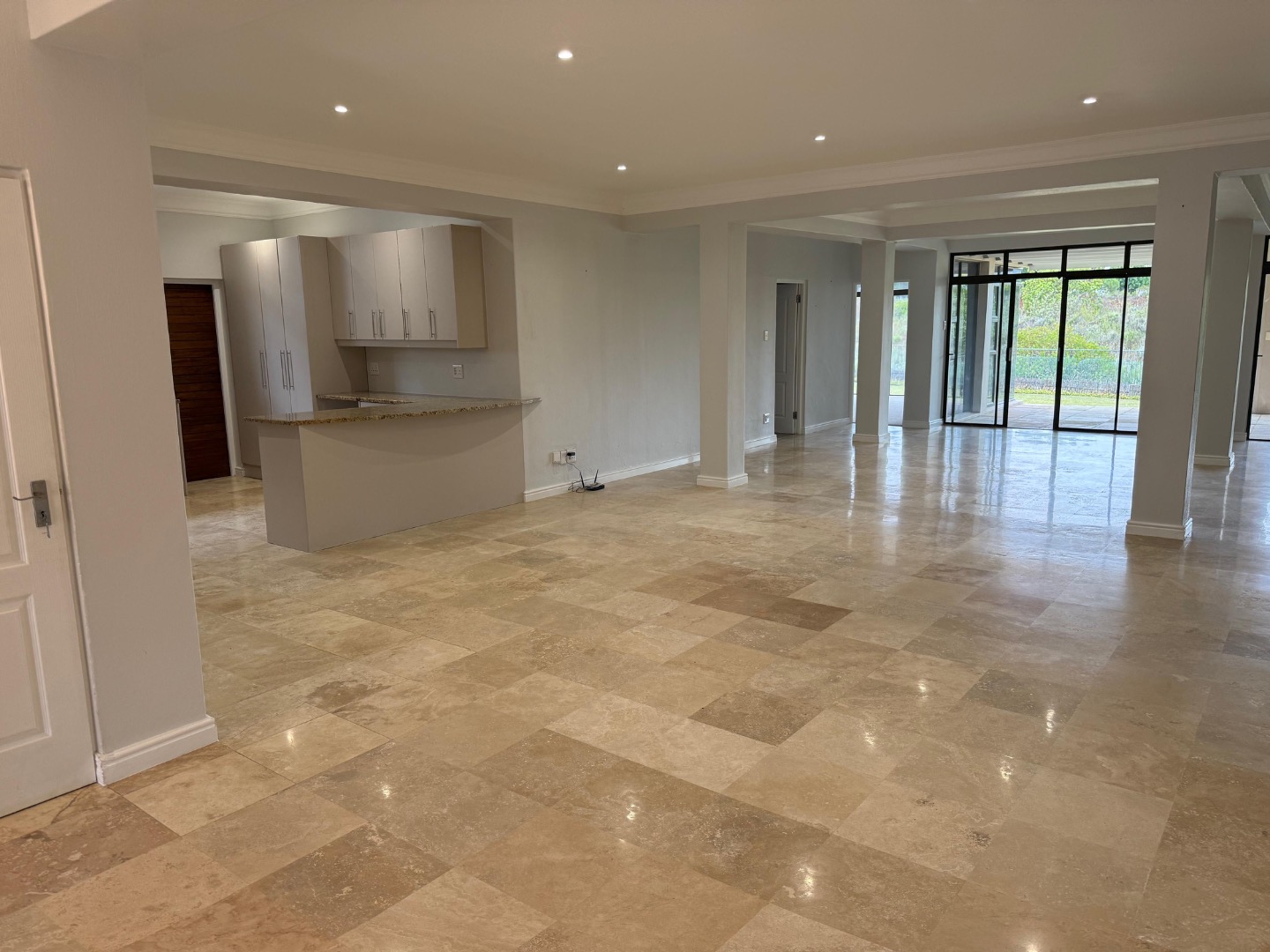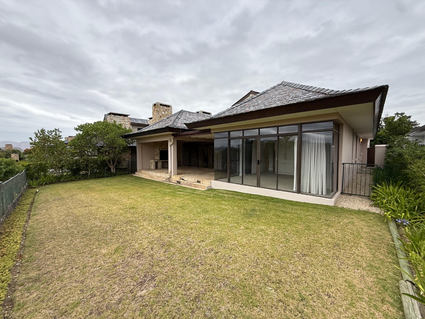 Enjoy cozy winter evenings by the fireplace in the living area, and appreciate the elegance of beautiful travertine tile flooring that flows throughout the entire house. For instant connectivity, fibre internet is already installed. The house is rented with fitted curtains.