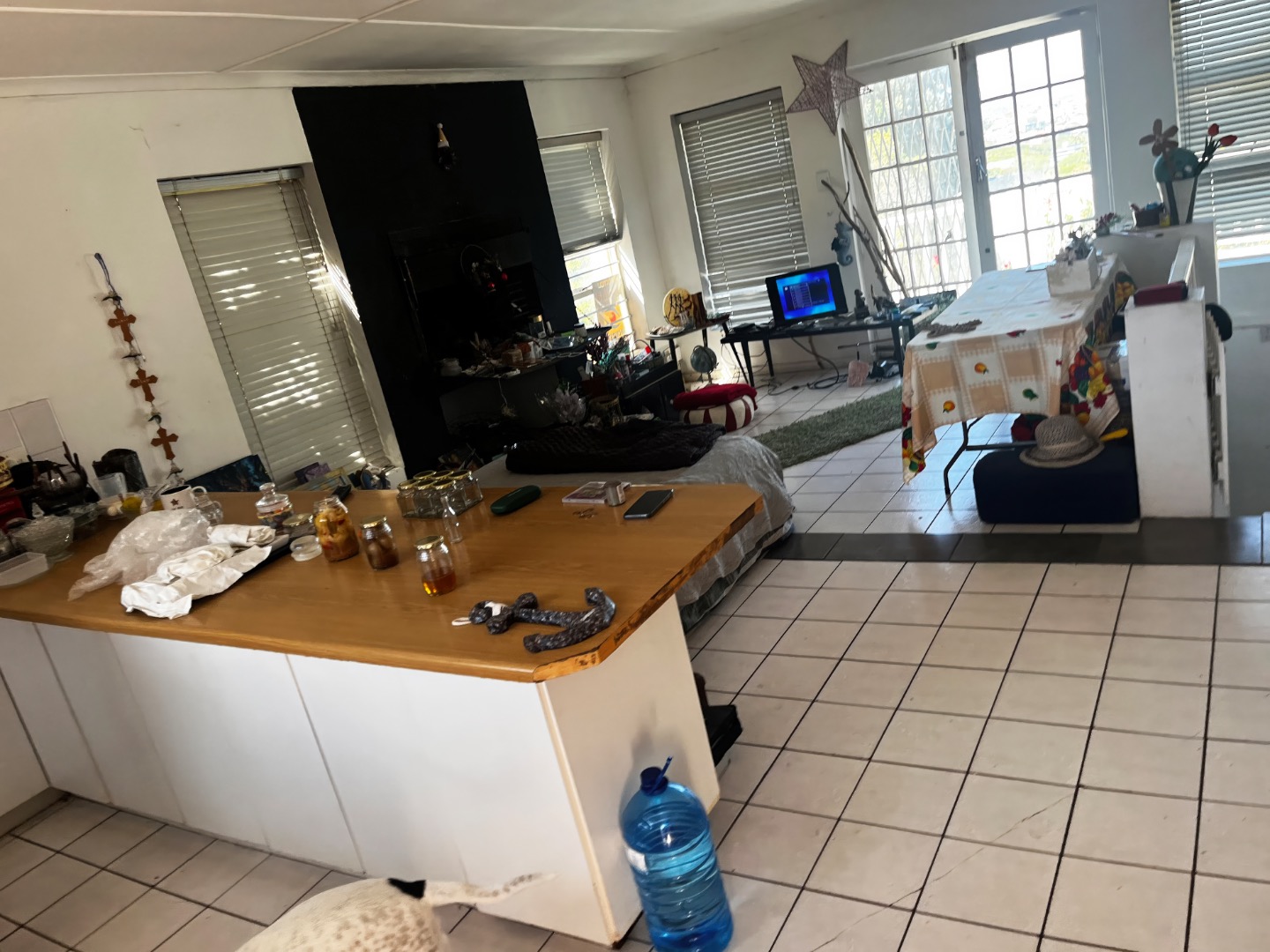 The main residence is designed for effortless living and entertaining, featuring an expansive open-plan kitchen and living area centred around a cozy indoor braai. This space flows seamlessly onto a large, sun-drenched balcony—complete with an outdoor braai—where you can enjoy sweeping mountain vistas and a tranquil, distant view of the ocean. The home provides three generous bedrooms and two bathrooms, including a private en-suite for the master suite.