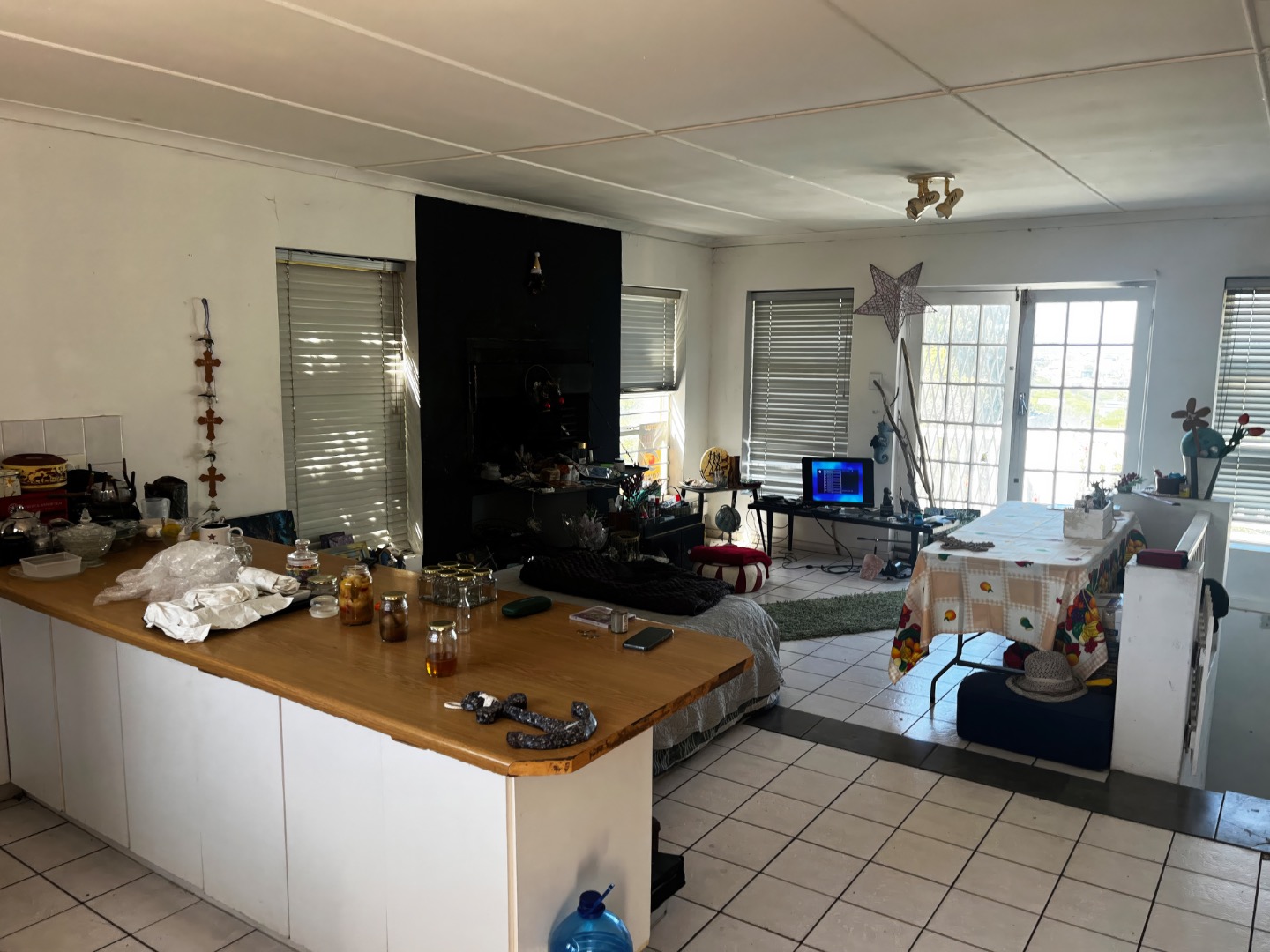 The main residence is designed for effortless living and entertaining, featuring an expansive open-plan kitchen and living area centred around a cozy indoor braai. This space flows seamlessly onto a large, sun-drenched balcony—complete with an outdoor braai—where you can enjoy sweeping mountain vistas and a tranquil, distant view of the ocean. The home provides three generous bedrooms and two bathrooms, including a private en-suite for the master suite.